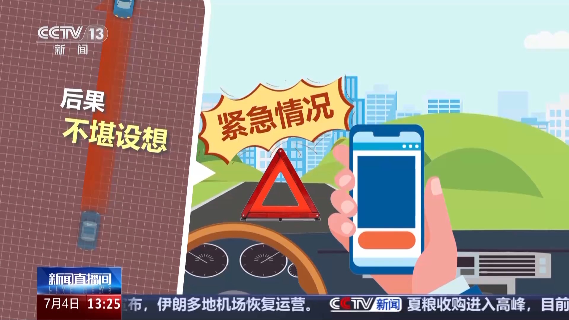 北京工业大学城市交通学院教授 赵晓华:这其实和我们大脑运作的方式有关系,它本质上是一种单线程的工作模式,也就是同一时间内大脑只能深度专注一项复杂任务,无法同时处理多个复杂信息,开车的时候哪怕只看手机一秒,也会导致大脑在驾驶任务和手机内容之间进行快速切换。而在复杂路况下,仅这一秒,就有可能引发各种危险。
