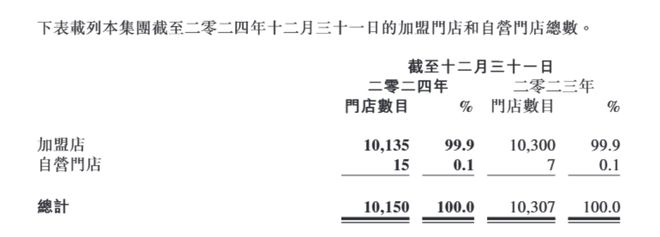 截至2024年底,锅圈共有10150家门店,门店网络覆盖全国31个省、自治区及直辖市。其中,自营门店仅15家;加盟店共计10135家,占比高达99.9%。