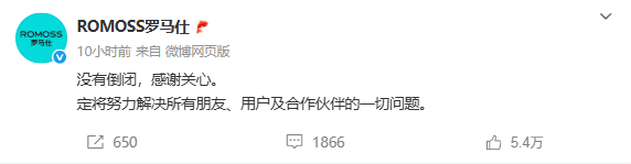 7月3日晚,深圳罗马仕科技有限公司官方微博发文回应“倒闭”传闻:没有倒闭,感谢关心。定将努力解决所有朋友、用户及合作伙伴的一切问题。