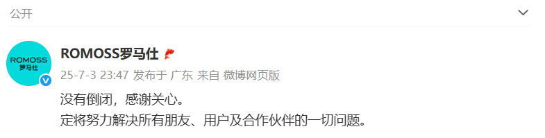 深圳罗马仕科技有限公司官方微博7月3日晚发文称: