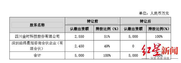 公告显示,2021年9月,金时科技与经纬晨旭共同投资设立深圳金时。其中金时科技出资2550万元,持有深圳金时51%股权;经纬晨旭出资2450万元,持有深圳金时49%股权。