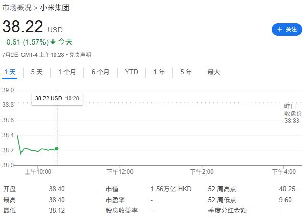美股早盘,小米集团ADR盘中跌超1.8%,现跌幅收窄。