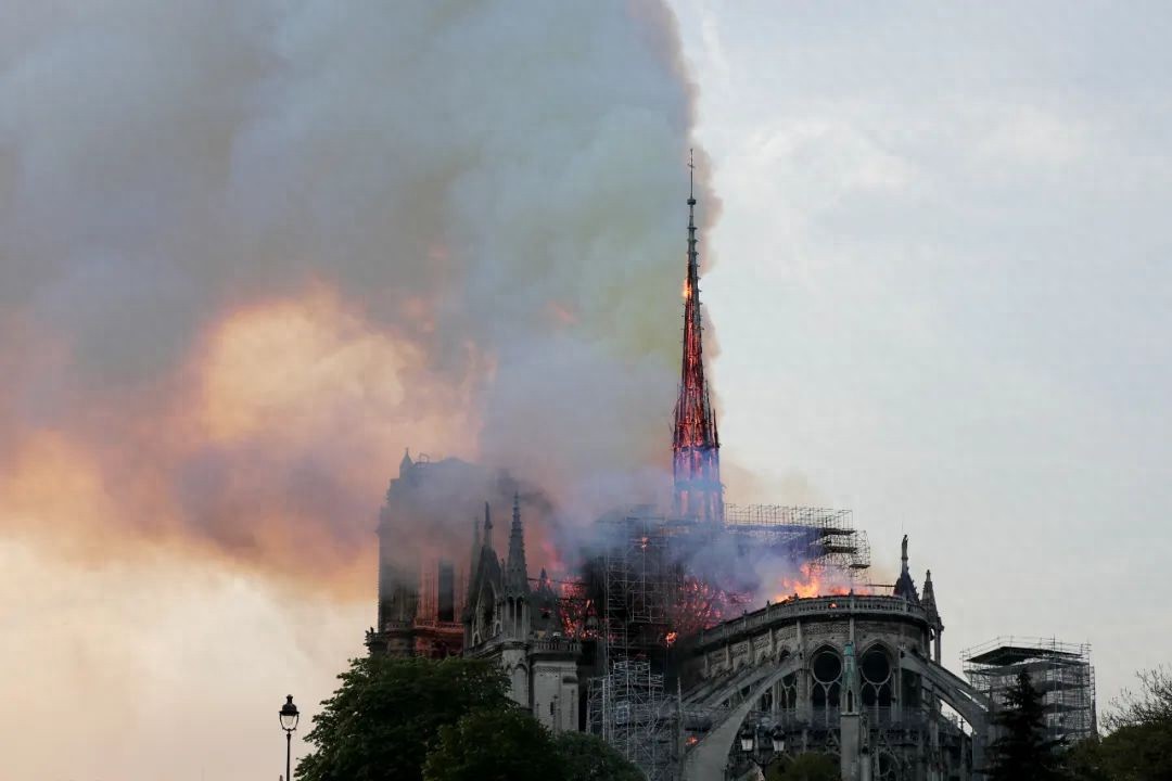 巴黎圣母院始建于12世纪,是法国最具代表性的古迹之一。2019年4月15日,巴黎圣母院的屋顶和尖塔毁于火灾,但主体建筑得以保存。2020年,巴黎圣母院大火一周年之际,法国总统马克龙承诺5年内完成巴黎圣母院修复工作。尖塔的修复工作包括加固钟楼和观景台等。