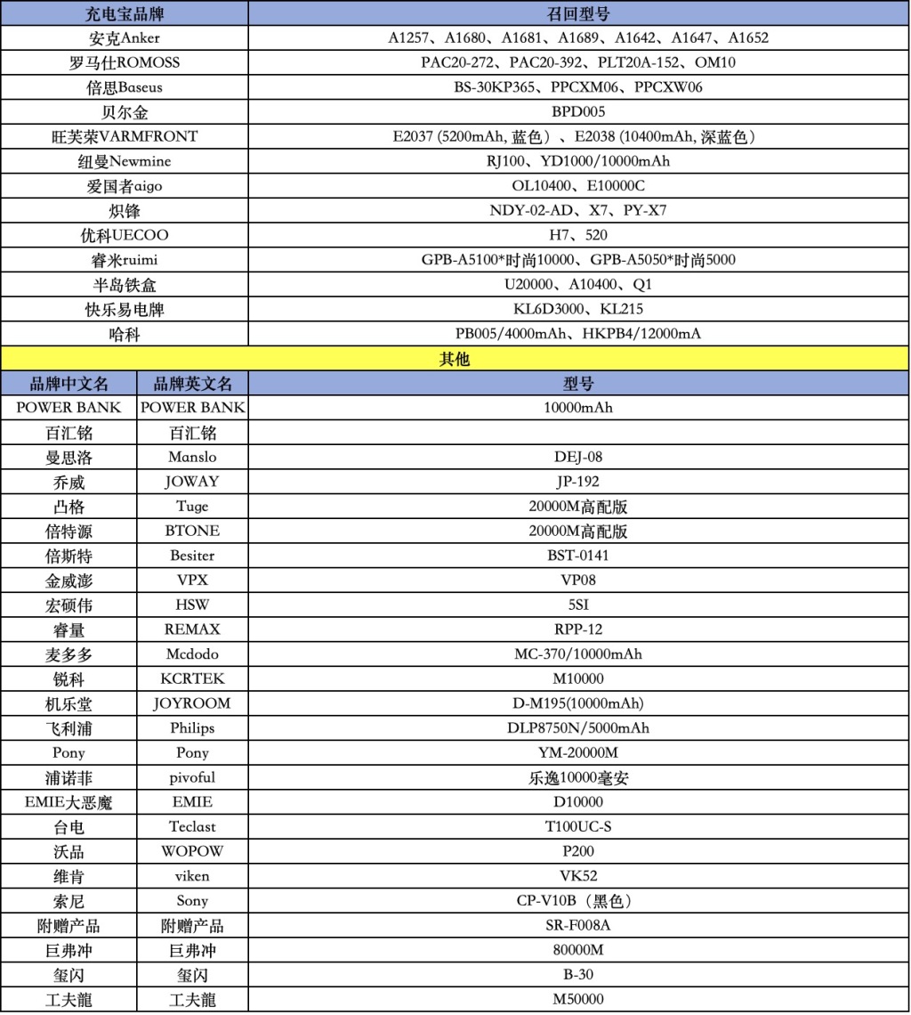 哪些充电宝属于被召回的型号?乘客该如何查询?