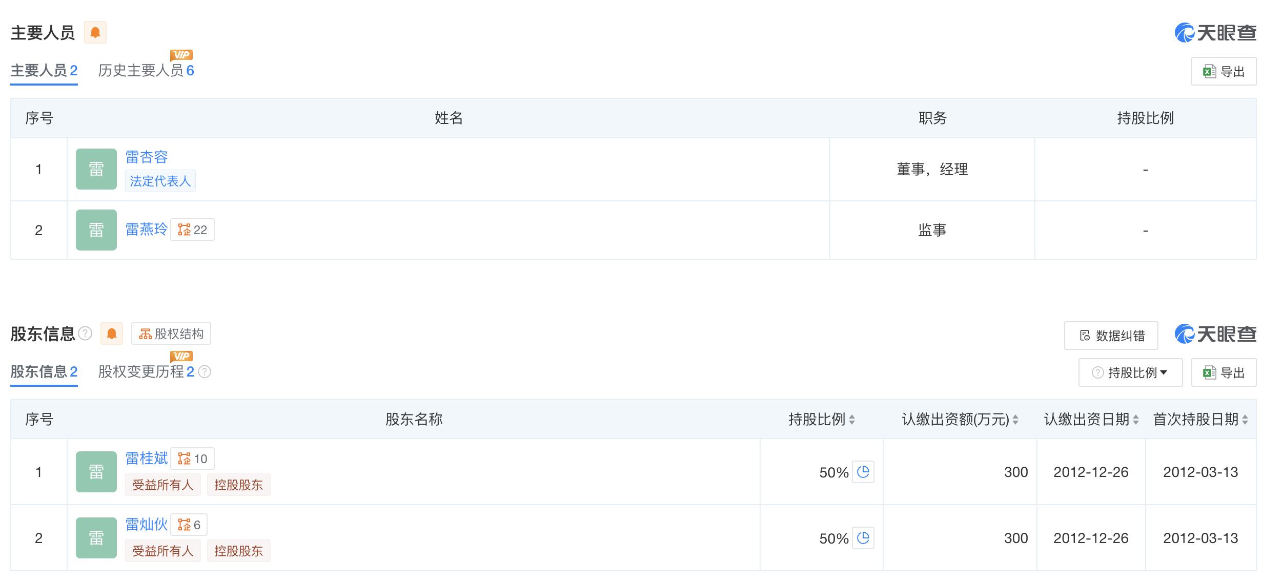 至于新任法定代表人雷杏容,从现有公开信息来看,暂未发现其控制其他关联企业的明确信息。