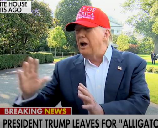 特朗普被记者问及拘留设施的设计理念是否是让鳄鱼吃掉试图逃跑的非法移民,他对此回答说:“我想是这样的。这不是什么好事。”特朗普接着说,“如果他们越狱了,我们必须教他们如何躲避鳄鱼,怎么逃跑。别直线跑。看,像这样,”特朗普像波浪一样挥舞手臂,“你知道吗?这样你的成功率会提高大约1%。”