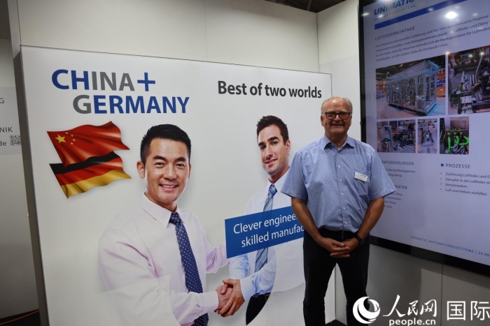 展会现场一个立式展板很引人瞩目,“中国+德国=优秀设计+强大制造”。德国尤尼马蒂自动化公司销售总监尤尔根·基尔斯特告诉记者,十多年前公司就在昆山设立分部,采购中国产零部件。由于中国供应链性价比优势,为德国客户提供高质量的机械零部件,德国市场对中国制造接受度不断提升。“我先后访华30多次,非常喜欢这个国家,也为中国经济发展速度感到震惊和欣喜。”