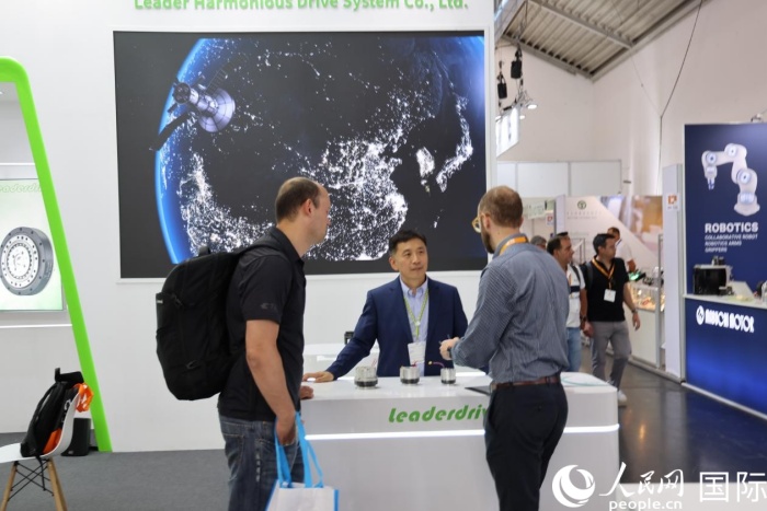 外国展商在参观绿的谐波展台。人民网记者 刘仲华摄