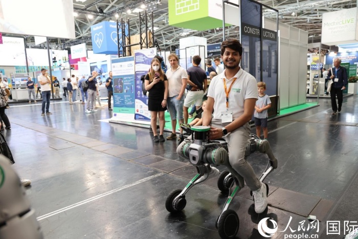 代理宇树机器人的德国四足机器人公司在展会现场展示了宇树人形机器人、机器狗等产品。该公司财务总监丹尼·埃勒丁说,宇树机器人性价比高,质量稳定,深受市场欢迎,目前覆盖了近80%的德国高校等科研机构。