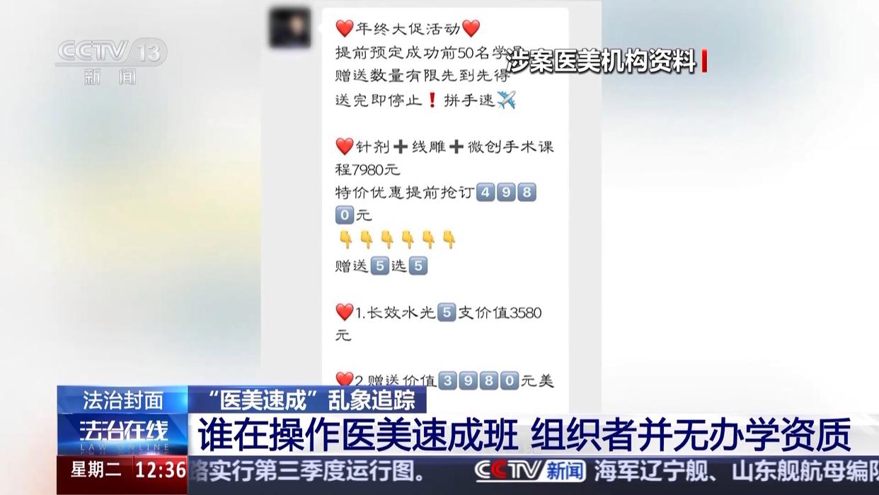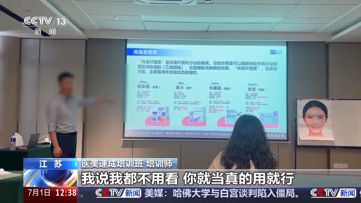 通过三天培训就能让“零基础”的学员摇身一变成为“医美从业者”,然而,就在节目播出的当天,这家非法举办医美速成班的培训机构在全国8座城市仍然在同时开班授课。