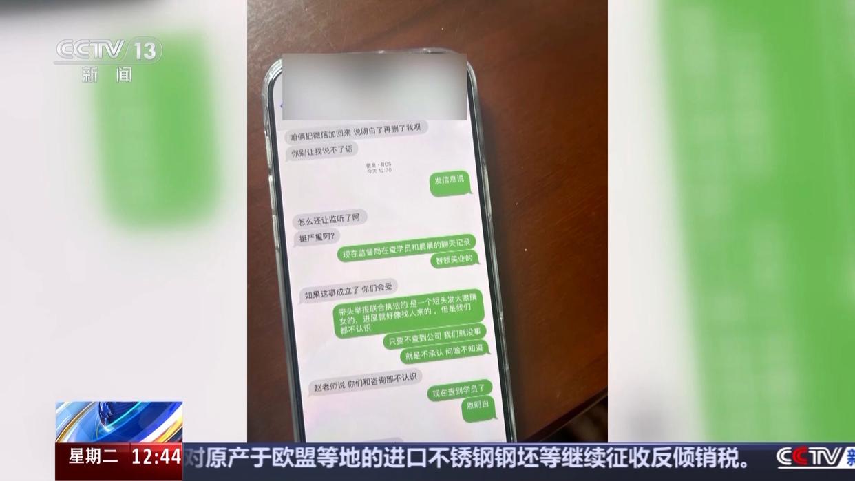 记者发现,这家机构有非常严密的上下游组织,在执法人员进入现场查处的第一时间,相关培训人员就立即删除了手机上的微信应用以及授课照片等等能透露关键信息的内容,并采取短信的形式向上游通风报信。