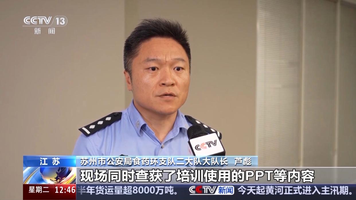 苏州市公安局食药环支队二大队大队长芦彪:29日,我局根据线索,联合卫健委、市场监管等部门,对外地一家医疗美容机构违规开设的培训班进行了联合查处,现场控制涉案人员10人,其中3人为培训讲师,7人为学员。现场同时查获了培训使用的PPT等内容。