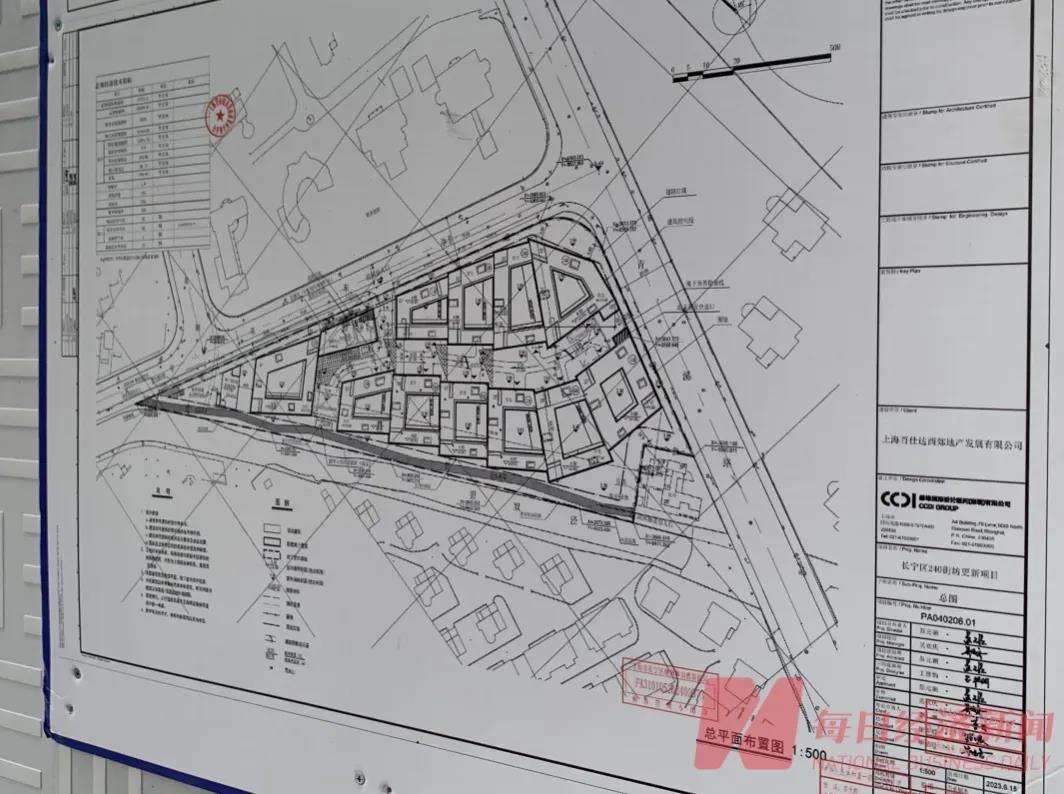 围墙外的施工铭牌写明了工程类别:民用住宅,建设单位为上海百仕达西郊地产发展有限公司(以下简称百仕达)。