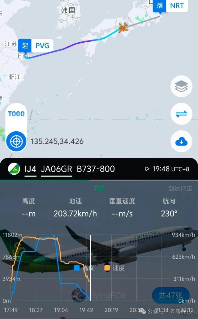 据媒体报道,该航班于当日17时49分从上海浦东正常起飞,原定于当地时间21时47分到达东京成田机场,但其雷达数据显示,在18时53分许,该航班原本位于超1.1万米的高空,在十分钟内突然急速下降至3200余米的高度。随后在近19时50分落地。