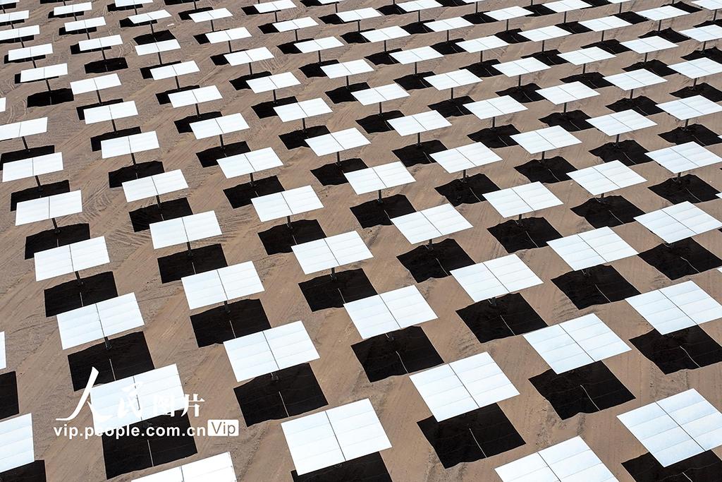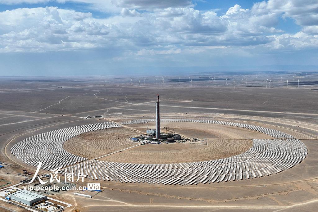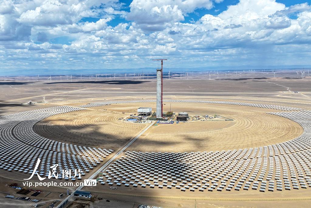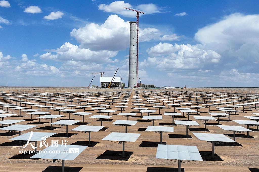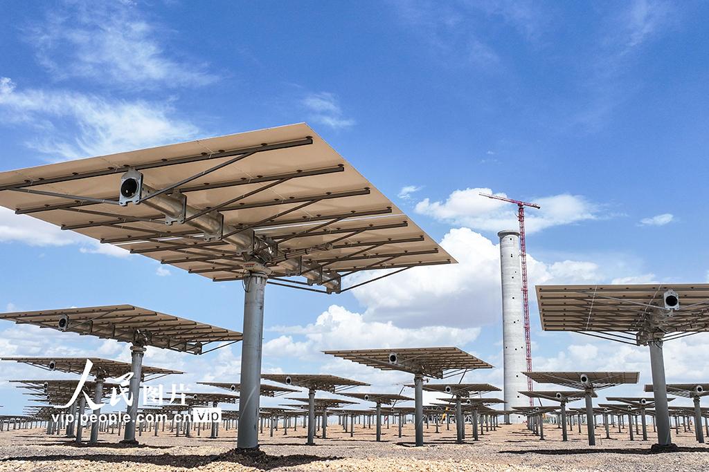 2025年6月19日,新疆,中能建哈密“光(热)储”1500MW基地项目建设有序推进。据了解,该项目总装机容量1500MW,按照“光热+光伏”一体化模式开发建设。项目建成并网后,每年可提供绿电约28.92亿千瓦时,相当于节约标煤86.8万吨,减少二氧化碳排放225.6万吨。钟卫亮摄(人民图片网)