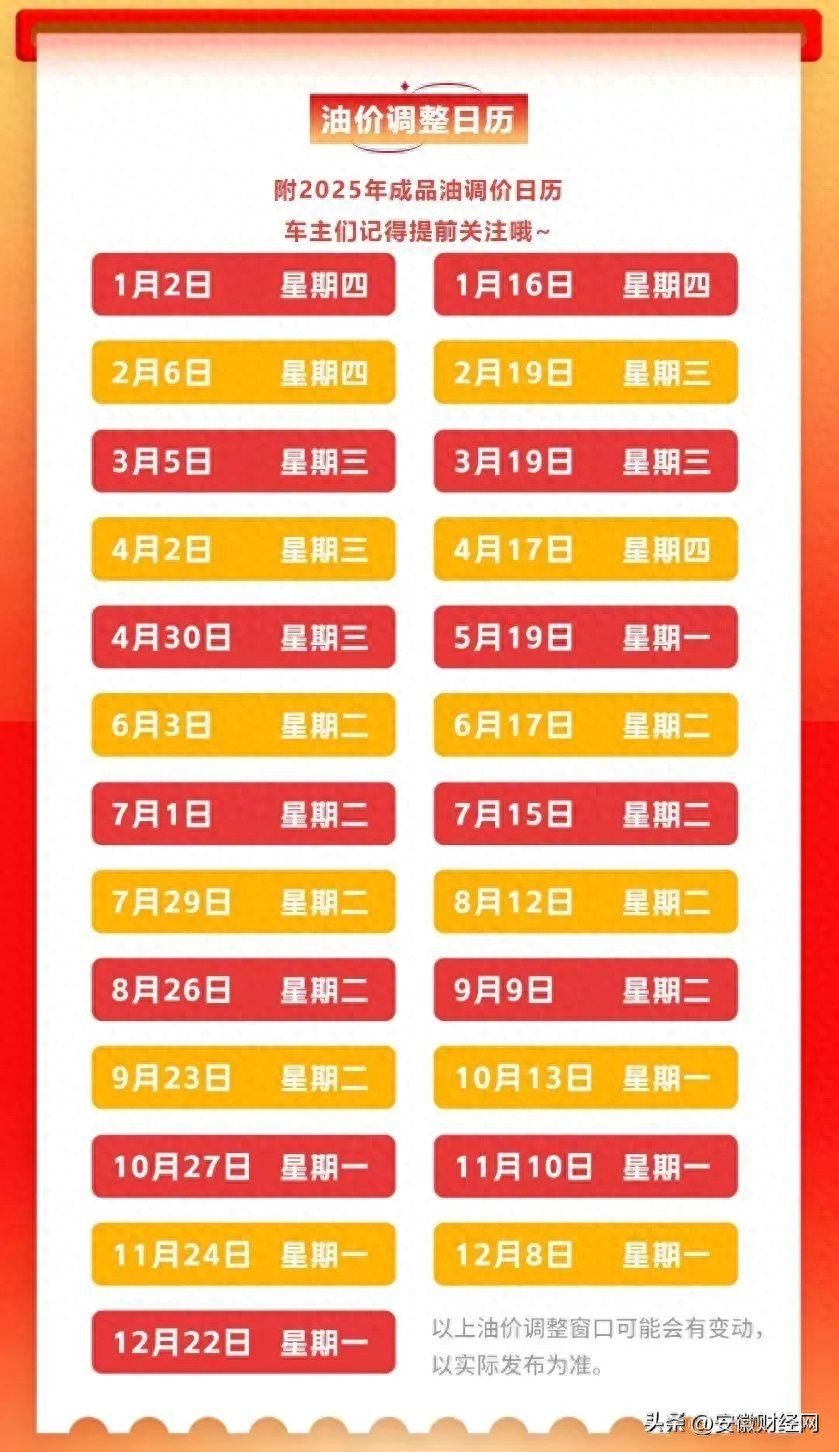 下一轮成品油零售调价窗口2025年7月1日24时,油价调整日历请收好: