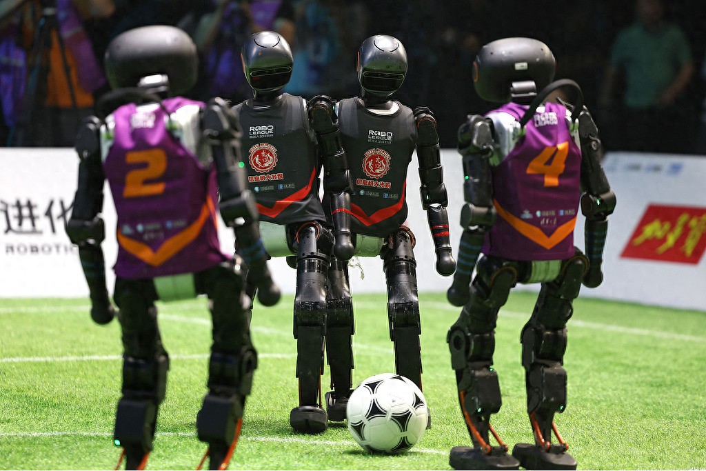 2025年6月28日,RoBoLeague机器人足球联赛决赛阶段比赛正式打响。(视觉中国)