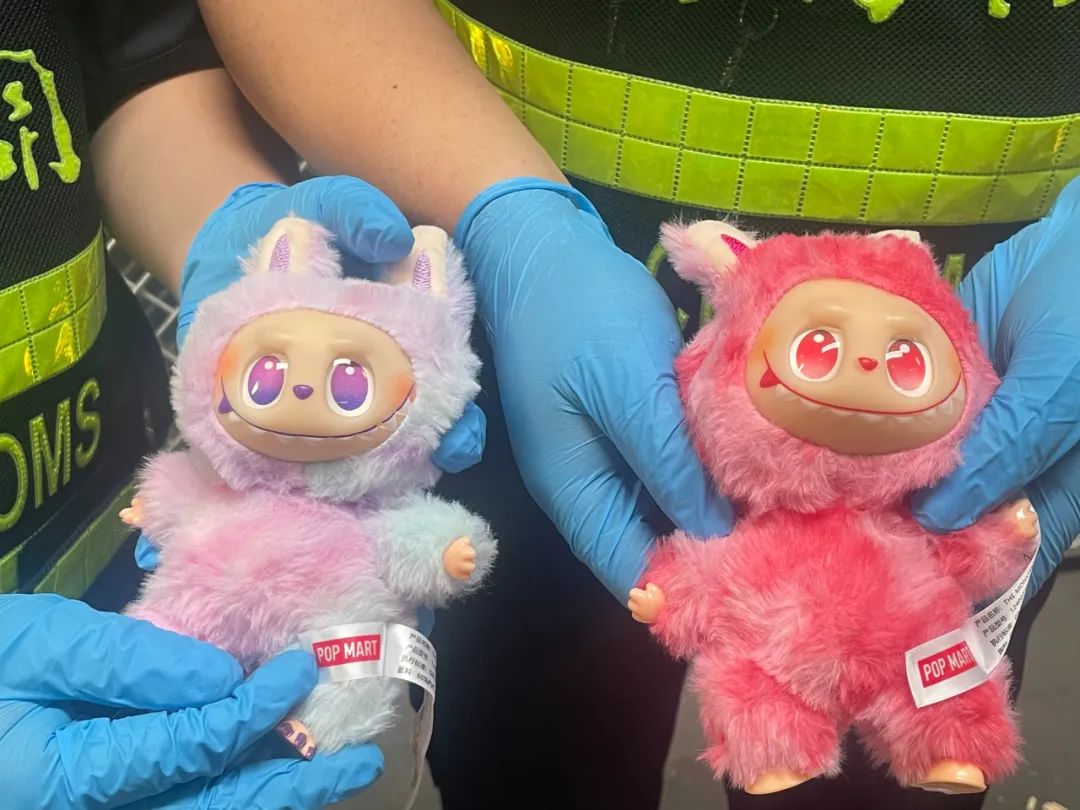 近日,郑州海关所属郑州机场海关在对一批跨境电商出口货物开展监管时,发现申报为“聚酰胺衣/女士”的货物中,装有大量印有“POP MART”(泡泡玛特)“LABUBU”品牌标识的玩偶,做工粗糙且部分为简陋纸袋包装。现场关员初步判断这些玩具涉嫌侵权,经联系权利人,确认均为侵犯相关商标权的货物。经清点,共有玩偶挂件2408件。