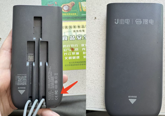 关于旧款设备的问题,街电官方客服对记者透露:“目前这种老款的公司已经在回收了,虽然充电宝机身无3C标,但是柜体侧面有标注。”