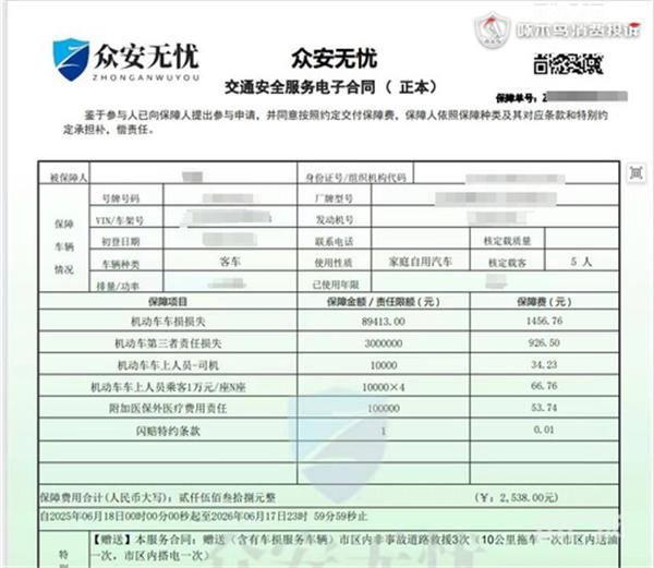 吴女士说:“有自称‘众安’的销售人员联系我们‘续保’,而且能说出我们的基本信息。”信息很准确,她就信了,价格比其他家更划算,便买了。可等拿到“保单”发给家人后,才得知这并不是一份标准的“车保”。