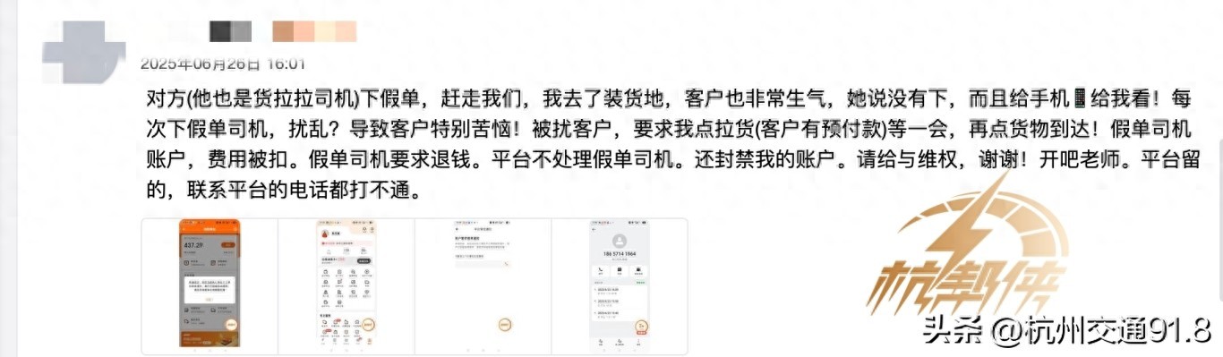 “感谢杭州交通91.8帮忙维权,但希望平台能真正重视问题,别让司机寒了心!”他坦言,类似“假单”现象并非个例,许多司机都曾遭遇类似套路,但因举证困难或申诉无门,最终只能吃“哑巴亏”。