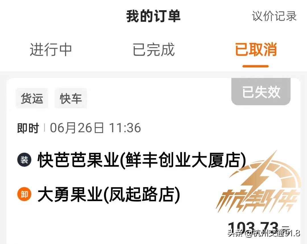 26日中午,陈师傅像往常一样在杭州余杭区勾庄水果批发市场附近等单。11点半左右,平台推送了一单从勾庄某水果店到拱墅区凤起路某水果店的运输订单,运费103.73元。陈师傅接下订单,迅速赶往装货点。
