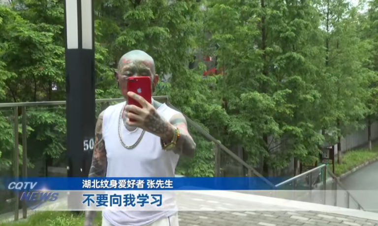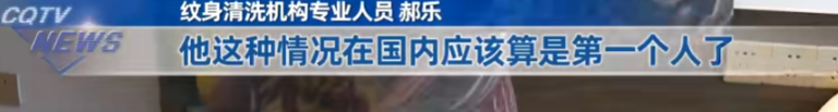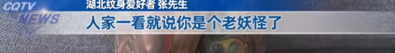 专业人员介绍,常见的刺青主要是黑、灰两种颜色,张大爷这样全身重彩刺青的非常少见,且彩色刺青清洗难度大,大爷光是去除面部刺青,就需要反复操作多个流程,并且要持续至少两年时间。
