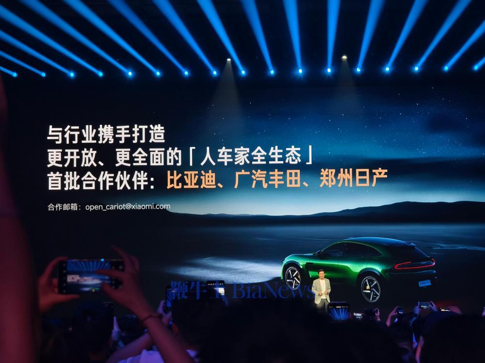 值得一提的是,在昨日的发布会上,雷军还公布了小米「人车家全生态」的首批合作伙伴,分别是:比亚迪、广汽丰田和郑州日产。