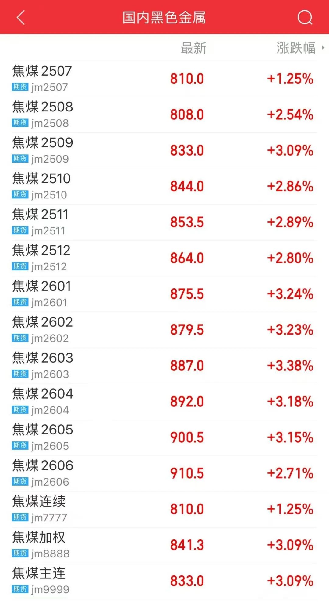 该消息引发盘中焦煤期货大涨。截至当日下午收盘,焦煤期货领涨商品期货板块。夜盘时段,焦煤期货延续涨势,截至收盘,主力合约涨3.09%。