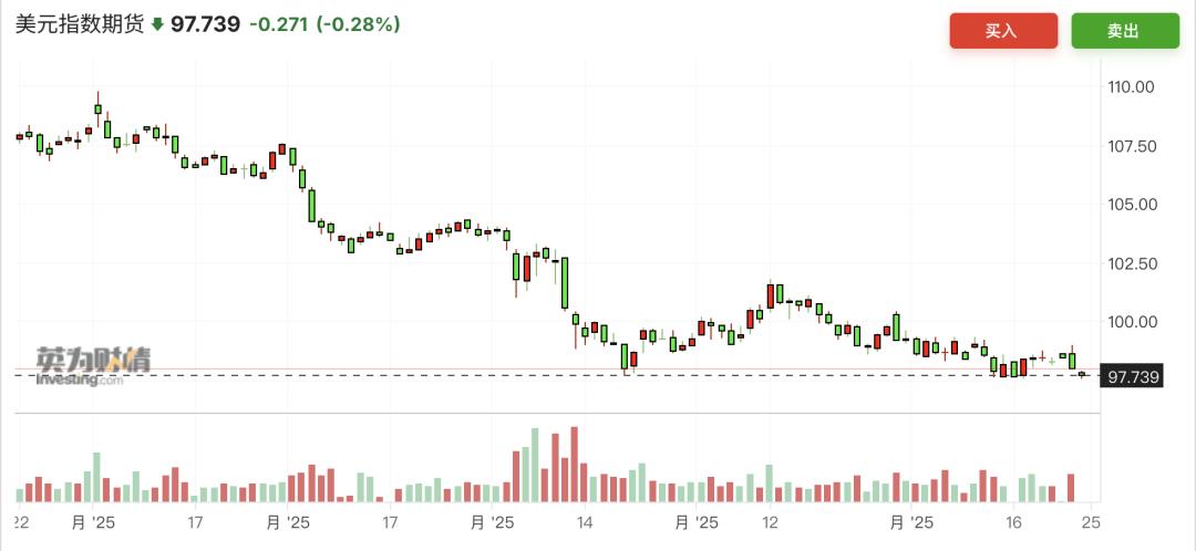 受中东冲突影响,美元指数一度冲击100,不过随着停火声明传出,美元遭遇猛烈抛售,回到了97区间。