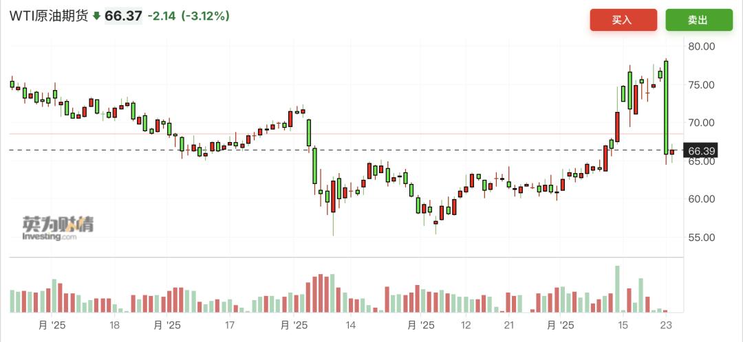 由于以色列和美国针对伊朗核计划的打击,此前地缘政治风险激增,油价一度单日飙升超10%,WTI油价在6月22日最高触及77美元/桶。