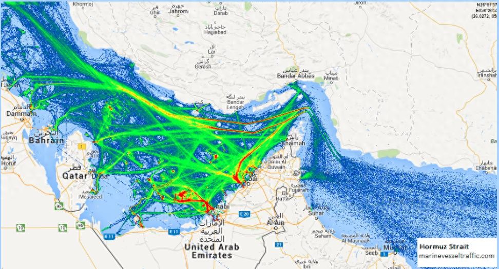 美国能源信息署在6月16日发布报告称,2024年和2025年第一季度通过霍尔木兹海峡的流量占全球海运石油贸易总额的四分之一以上,约占全球石油和石油产品消费量的五分之一。此外,全球约20%的液化天然气贸易也通过海峡。