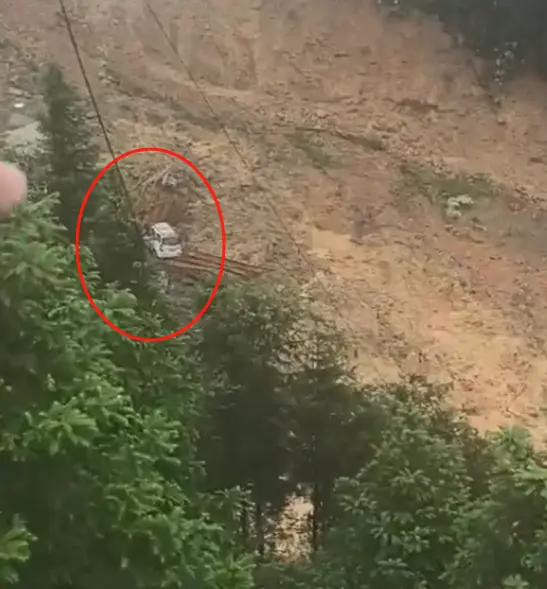 有视频显示,一红色货车车头已经腾空,车身还留在路面,货车司机尚待在车头。路上的人对司机喊“你命大啊危险啊!只能等消防来啊!没信号!”并称下方已经有两辆小车掉落。司机劝该路人不要再往前,该路人随即发现路面有开裂,迅速往后撤。