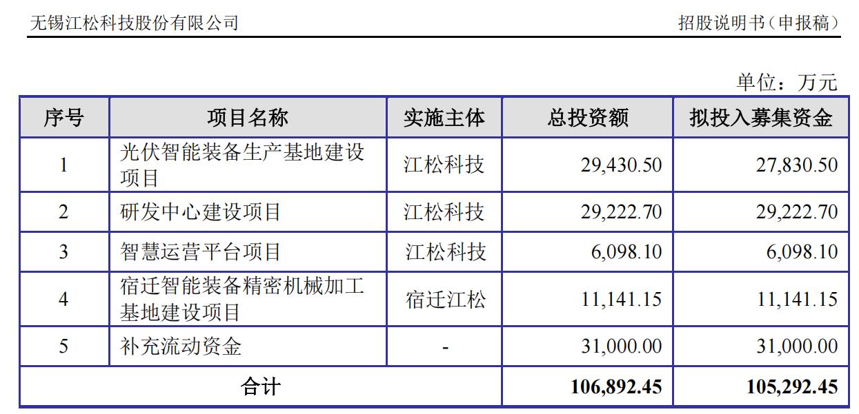 江松科技募资拟投项目 资料来源:江松科技招股说明书