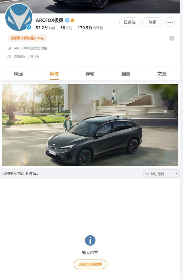 6月22日,大皖新闻记者在ARCFOX极狐官方微博上搜索“那尔那茜”,未显示任何内容,疑似已经删除了相关内容。