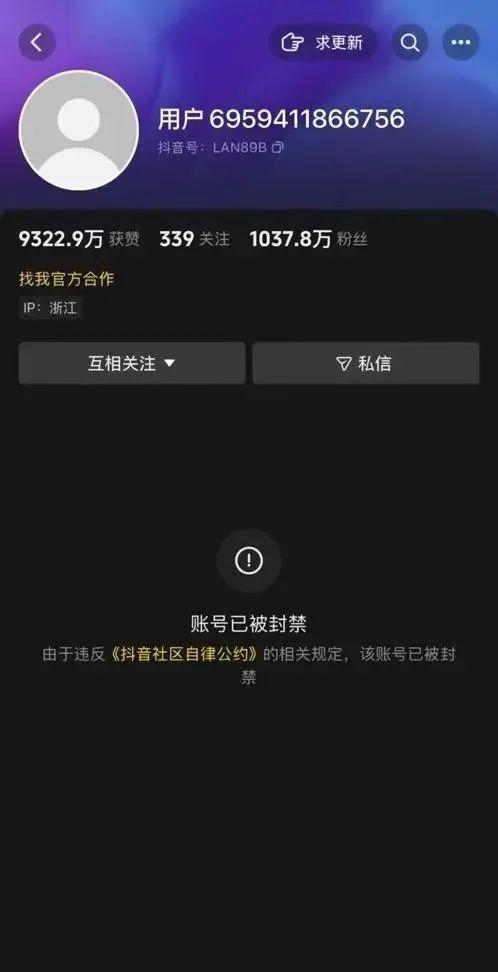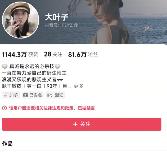 目前,该博主的抖音已被禁言,其当前粉丝数为81.6万。