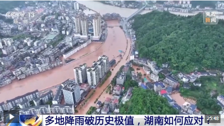 从6月18日开始,湖南出现的强降雨范围集中、雨量大、极端性强,多个乡镇的降雨打破当地历史极值。6月19日,全国有14条河流发生超警以上洪水,其中湖南省四大河流之一的澧水全线超警,它的上游干流还发生了1998年以来的最大洪水。20日,湖南省气象台继续发布暴雨橙色预警。《新闻1+1》关注:多地降雨破历史极值,湖南如何应对?
