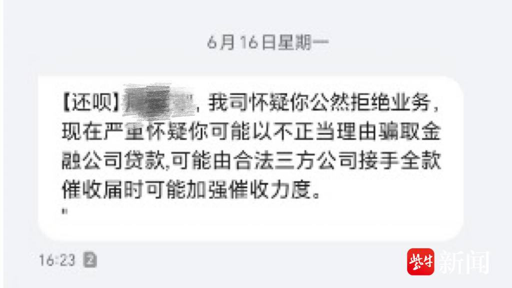 紫牛新闻记者再次查看周先生收到的短信,发现在众多催收短信中确实夹杂了几条开头是“还呗”字样的短信,相比于侮辱性短信,这几条内容比较正常,主要是做逾期时间的提示,但6月16日有一条写道:“我司怀疑你公然拒绝业务,现在严重怀疑你可能以不正当理由骗取金融公司贷款,可能由合法第三方公司接手全款催收,届时可能加强催收力度。”