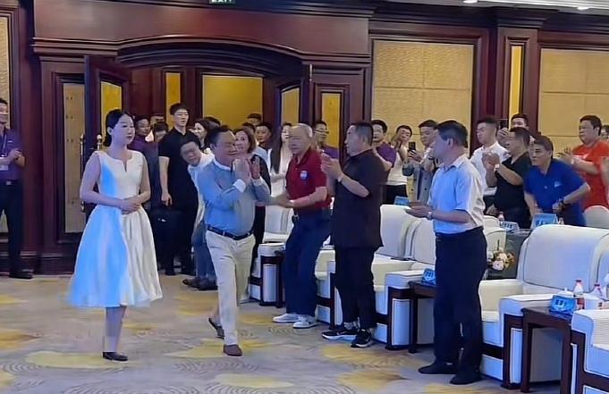 红星资本局通过服装对比发现,这疑似是黄光裕于6月13日在北京出席通通APP商业合作大会的场景。