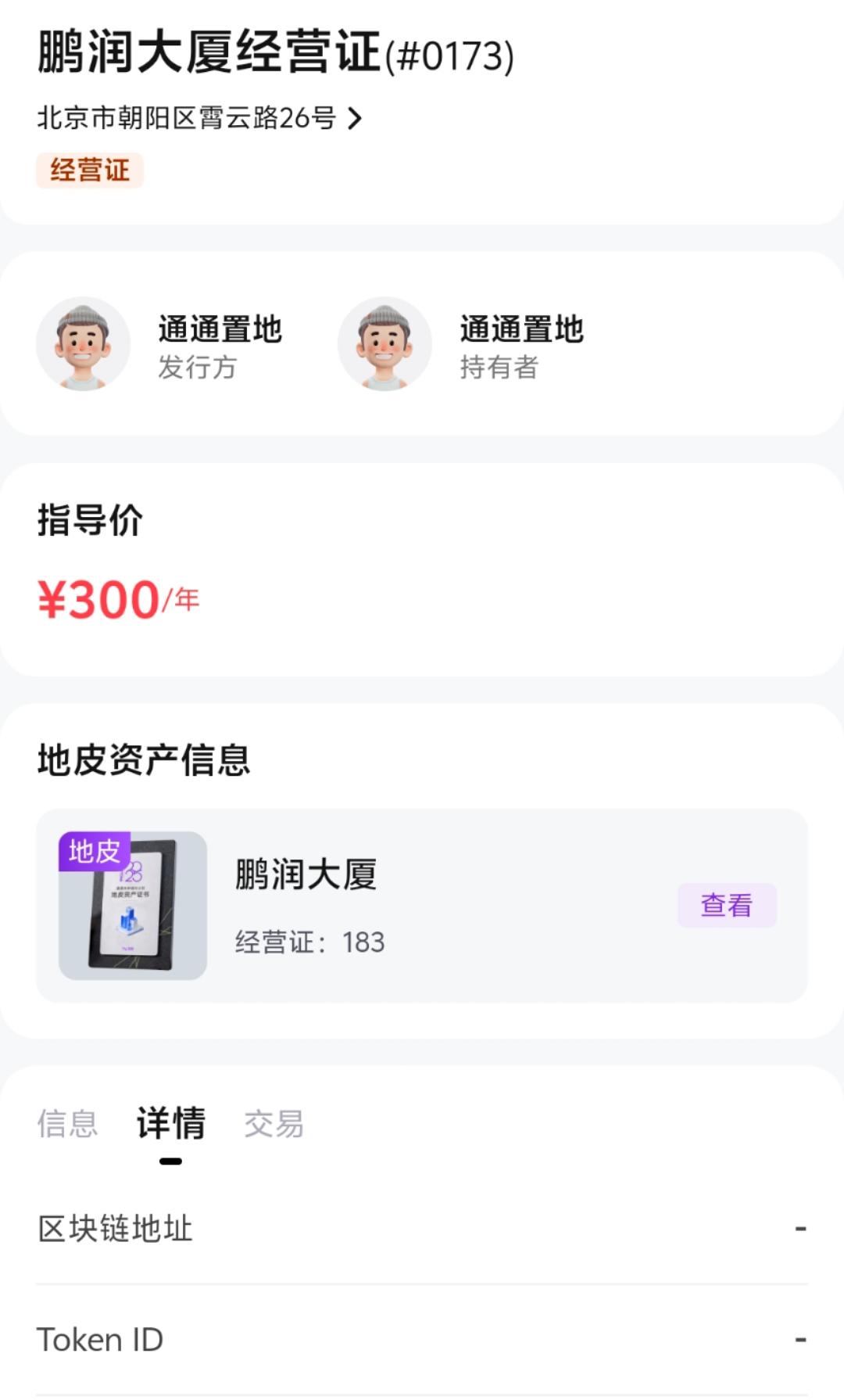 在待售经营证的详情页面,有区块链地址等栏目,但上面均没有信息。