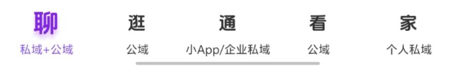 其中,虚拟形象所在的“家”为个人私域,拼低低所在的“通”为企业私域;而在此之外,还有“聊(私域+公域)”“逛(公域)”“看(公域)”等板块。