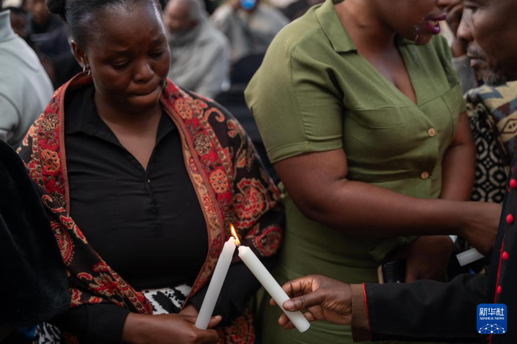 6月19日,在南非东开普省姆塔塔,人们悼念洪灾遇难者。新华社发(南非东开普省政府供图)