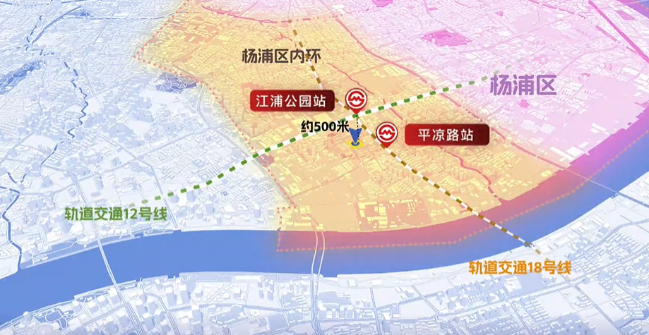 该地块位置优势明显,位于内环内,距离杨浦滨江1公里,以地块为中心,15分钟车程范围内均可抵达外滩和浦东陆家嘴等上海核心商务区。地块距轨道交通18号线平凉路站5号口约200米,距轨道交通12号线、18号线江浦公园站3号口约500米。