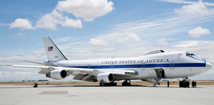 E-4B可当作美国总统、国防部长和参谋长联席会议主席的空中指挥中心,确保他们能在紧急情况下保持关键的指挥和通信,飞机上的人可以与世界各地的人进行通信,同时,还能够抵御核爆炸、网络攻击等,并配有发射导弹的装备。该飞机设有18个床位、一个简报室、一个团队协作区、一个会议室、一个指挥室和一个指定的休息区,在国家紧急情况下可成为“飞行的五角大楼”。