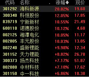 6月19日,固态电池板块短线拉升,截至发稿,海科新源20%涨停,科恒股份涨超12%,湘潭电化、丰元股份等涨停,宁新新材、金银河、江特电机、曼恩斯特等跟涨。