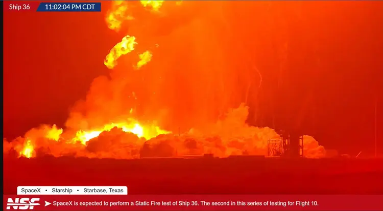 SpaceX星舰36号火箭静态点火测试突发爆炸,现场火光冲天