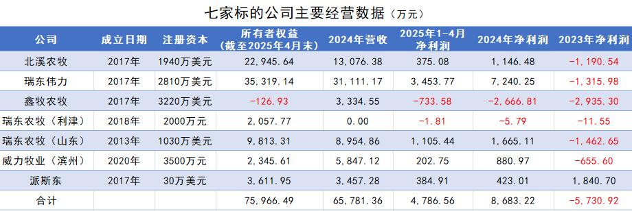瑞东农牧(新加坡)旗下的七家公司 图源:公告