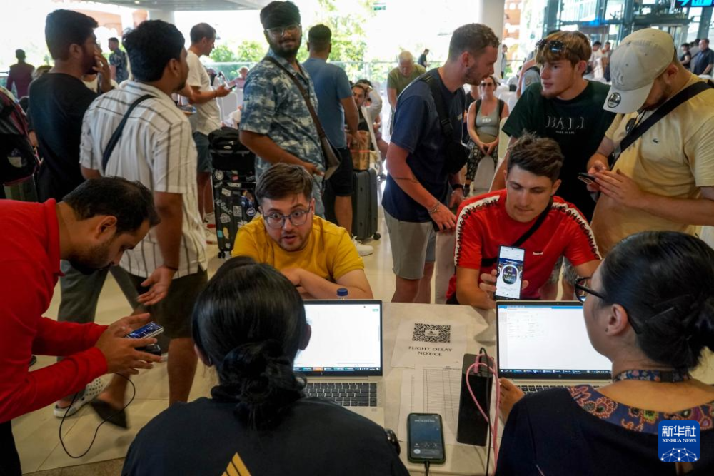 6月18日,在印度尼西亚巴厘岛伍拉莱国际机场,乘客们查看航班信息。