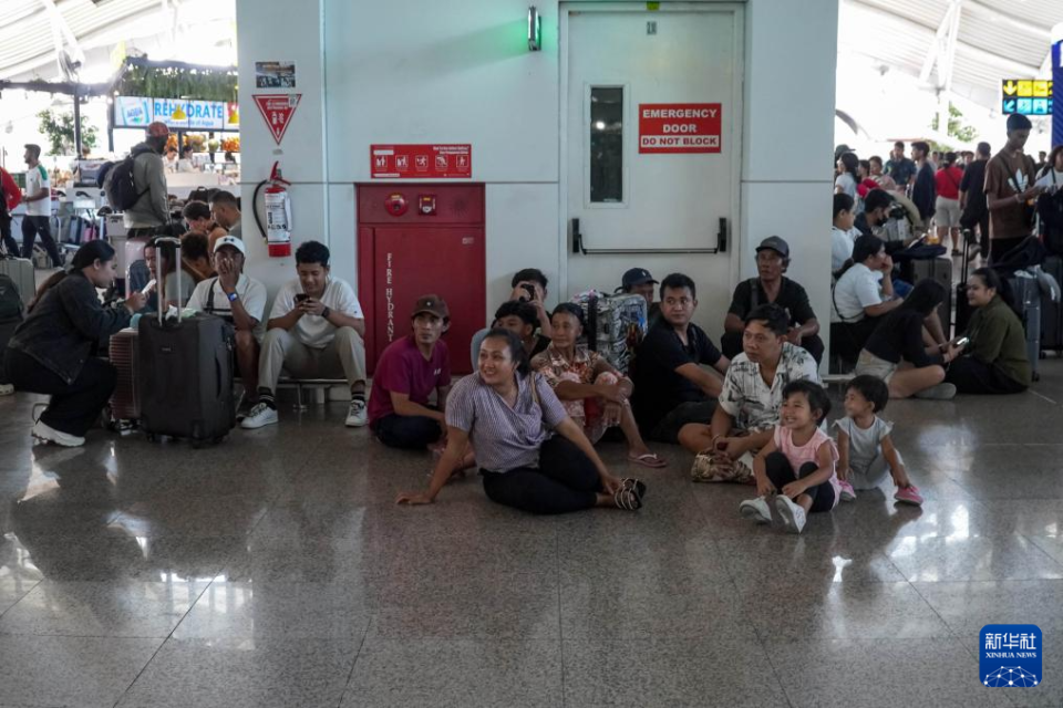 6月18日,在印度尼西亚巴厘岛,由于勒沃托比-拉基拉基火山喷发导致航班延误的乘客们在伍拉莱国际机场休息。