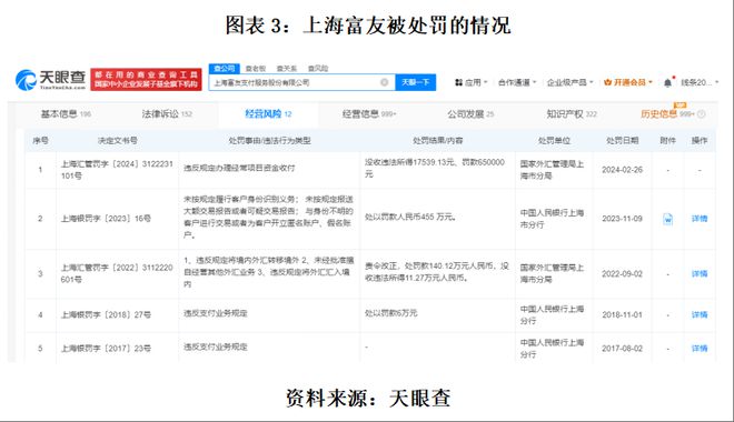 除此以外,2024年2月26日,上海富友因违反规定办理经常项目资金收付,被国家外汇管理局上海市分局没收违法所得17539.13元,罚款65万元。